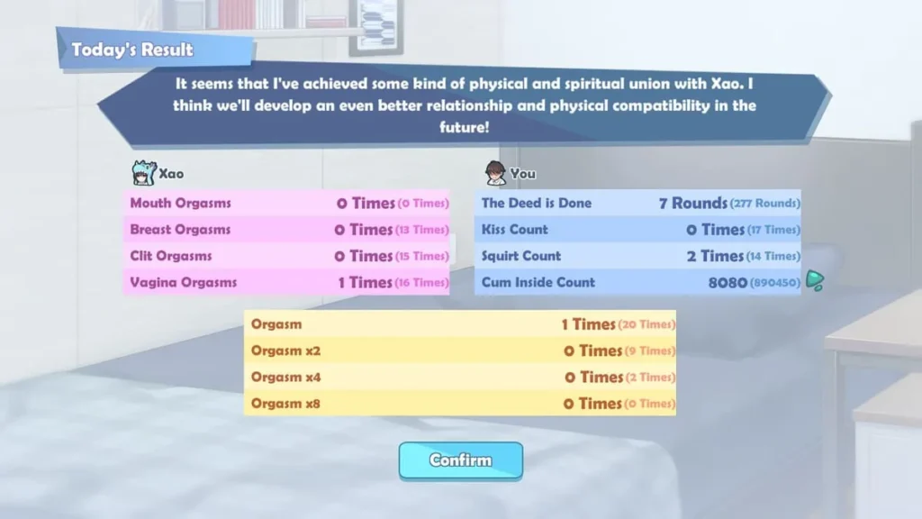 * Special Items: Earned from conquest events or as rare gifts. Used for deep relationship milestones, major apartment upgrades, and unlocking special scenes.